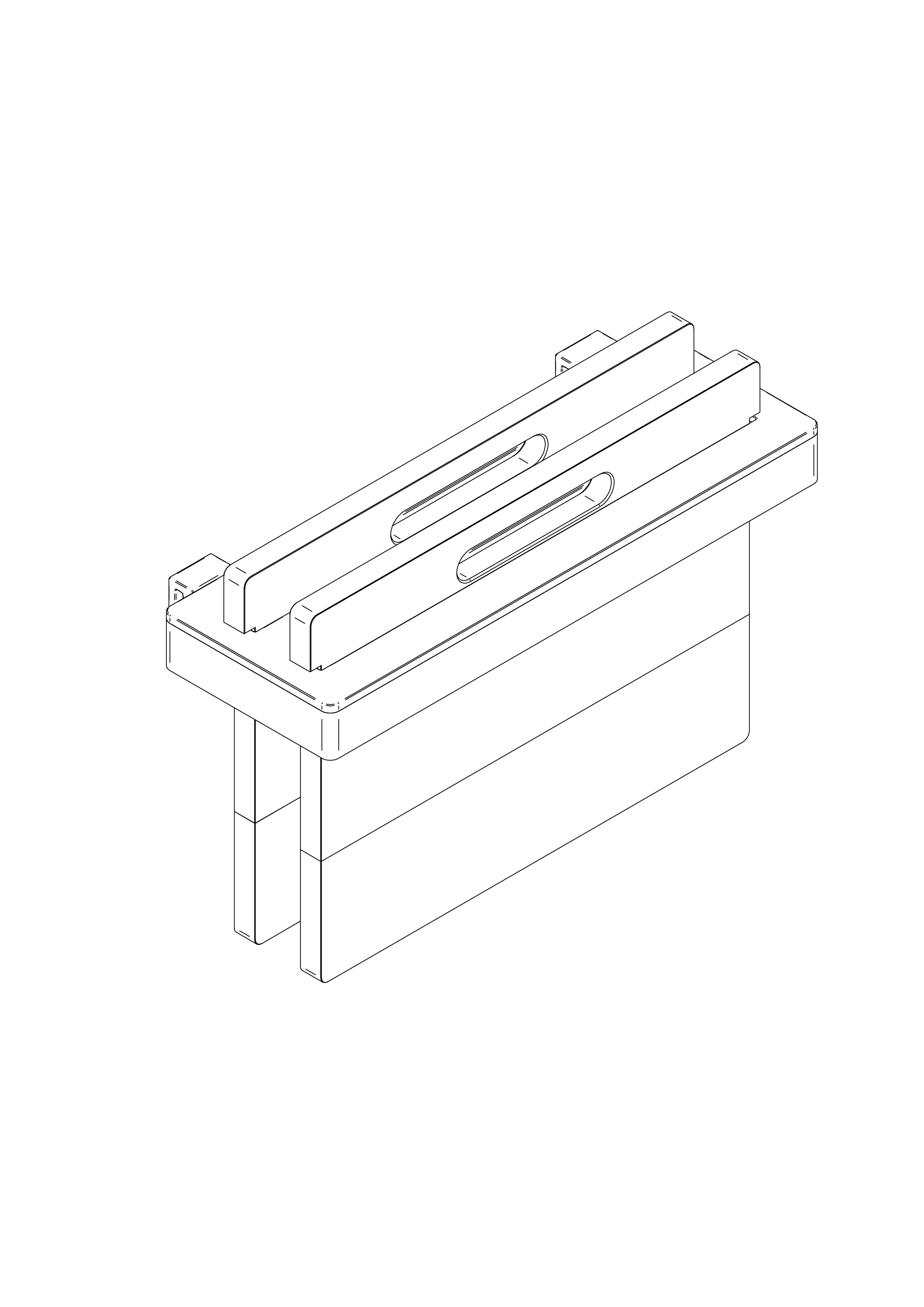 Accessory with divider for storing two beech wood cutting boards, designed to be attached to the Mirage support bar.