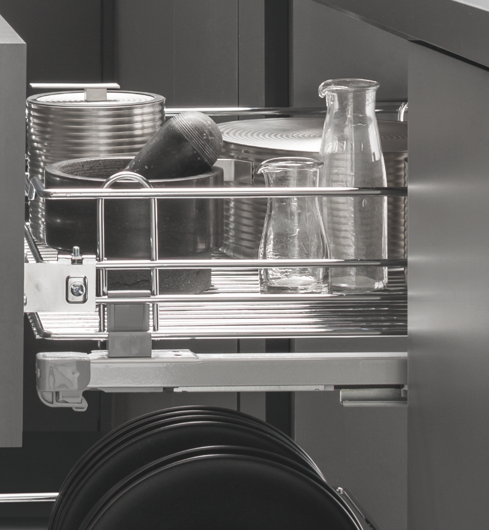 The comfort provided by the soft-closing system and the possibility to pull out the drawer completely ensure a practical and effective usage. Moreover, it is possibile to store products in such a way as to be easily visible and accessible.
