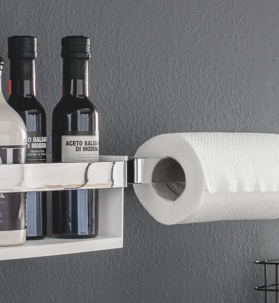 Accessory for storing the paper towel roll designed to be attached to the Mirage support bar.