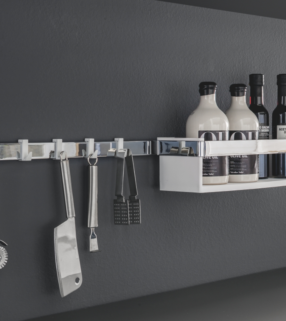 Accessory for storing spices, jars or other containers designed to be attached to the Mirage support bar.