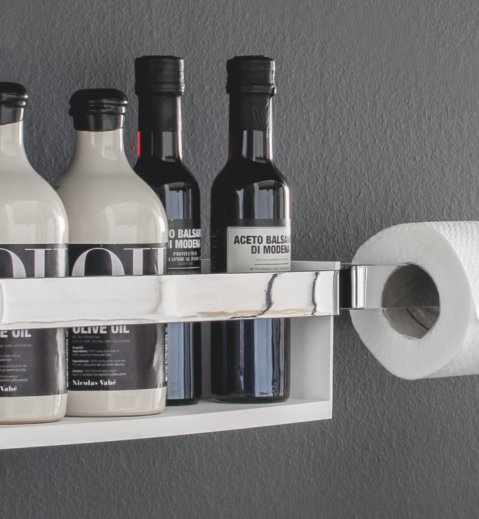 - Spice organizer in white or black ABS