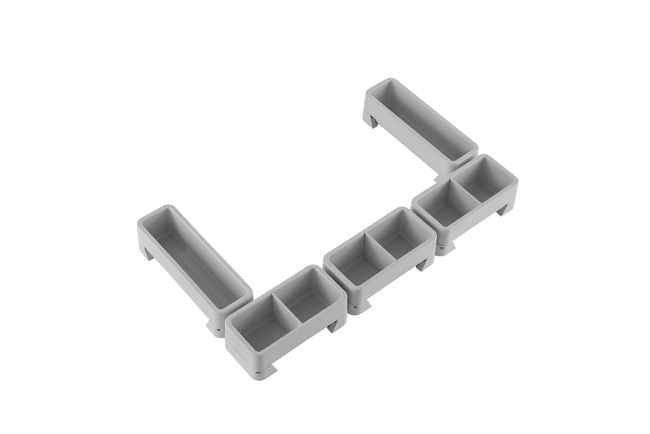 - Central plastic trays and side dividers