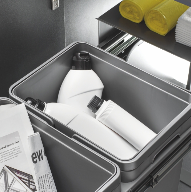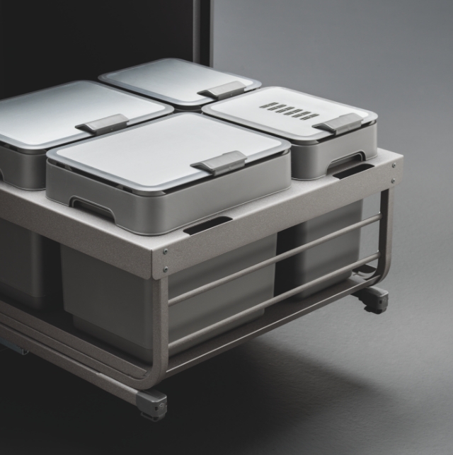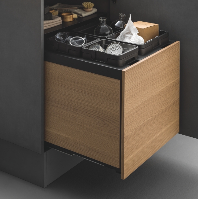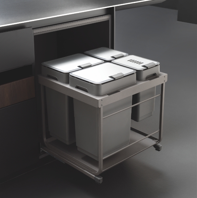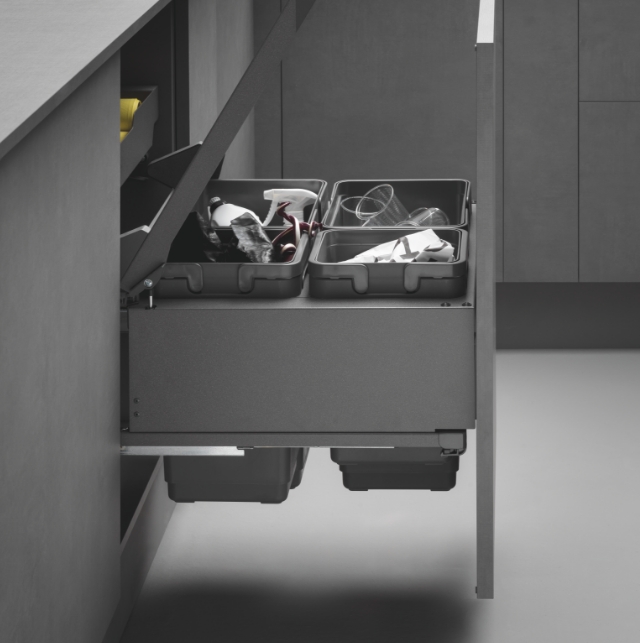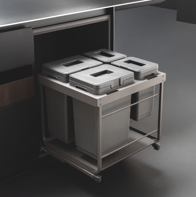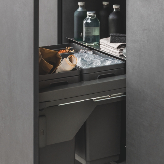 Uno spazio ottimizzato e perfettamente integrato nell’ambiente cucina, anche per la raccolta differenziata. I sistemi di apertura e chiusura, insieme ai meccanismi di estrazione, garantiscono ordine e igiene nella quotidianità. Funzionalità ed efficienza si uniscono per valorizzare ogni centimetro, contribuendo a un futuro più sostenibile.