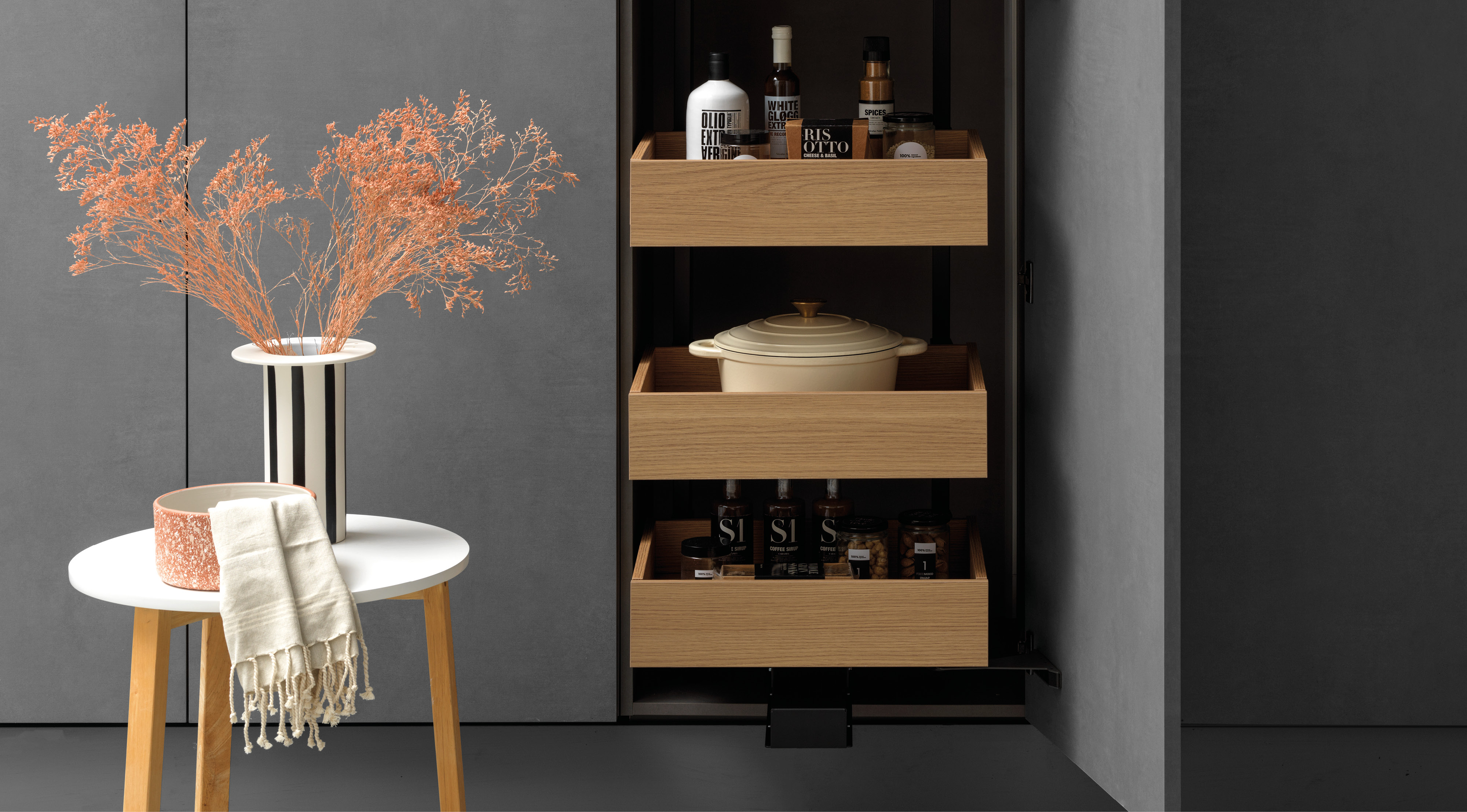 Ti invitiamo al nostro stand B2/C3 di SICAM 2025 per toccare con mano tutta la versatilità della nuova gamma Lignae: dagli estraibili ai meccanismi angolari, dalle colonne fino all'estraibile doppio. Tutti realizzati interamente in legno e disponibili in tre raffinate finiture — chiaro, medio e scuro — studiate per armonizzarsi con ogni stile d’arredo e integrarsi perfettamente con le strutture standard VIBO in lamiera Nero Freddo.