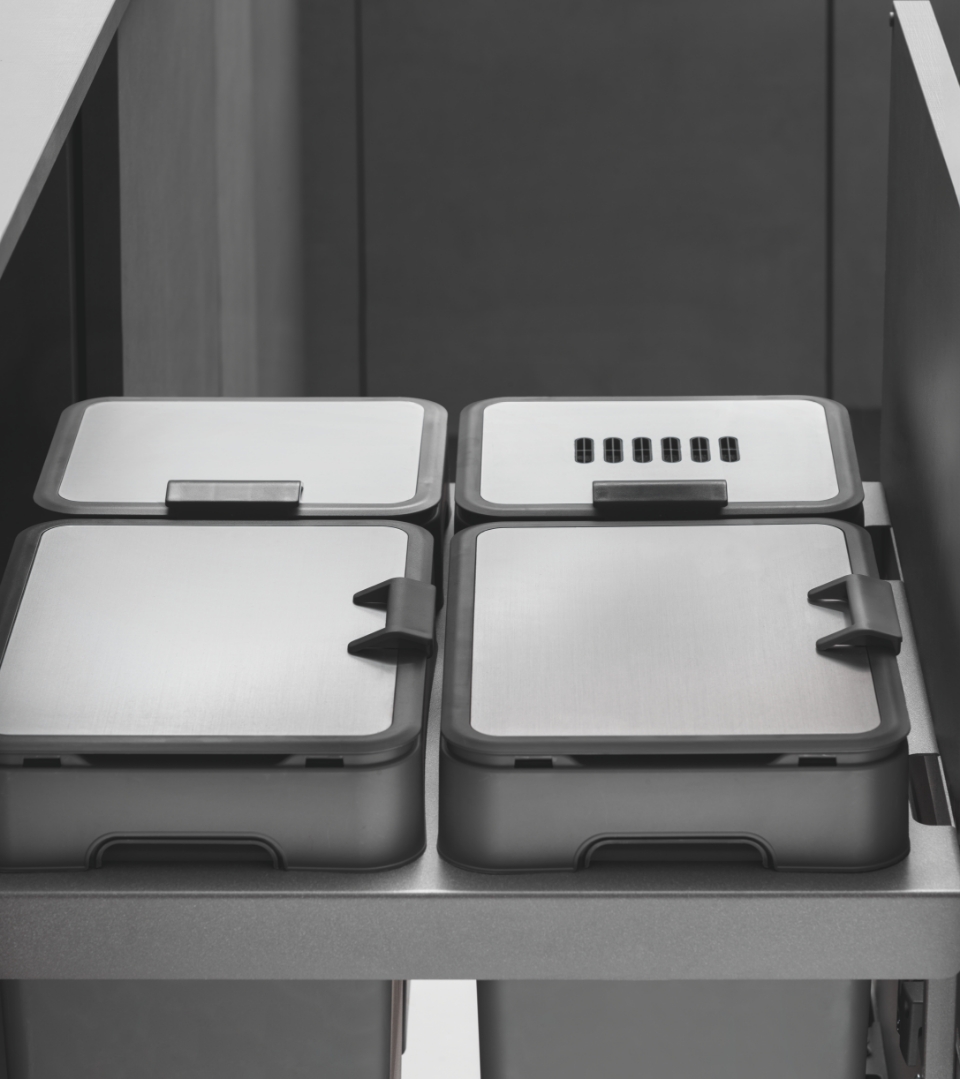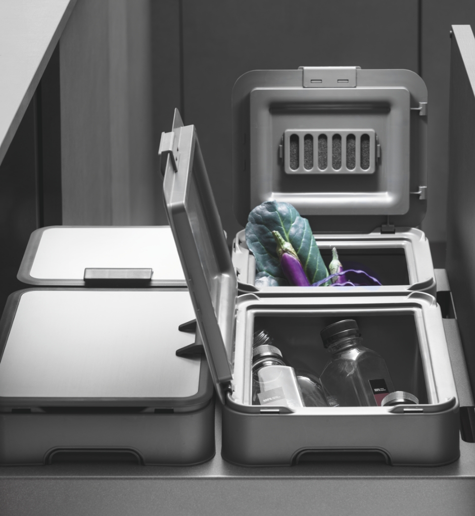 In aggiunta c'è la possibilità di scegliere il coperchio nella versione con o senza il filtro a carboni attivi, antiodore e lavabile in lavastoviglie.