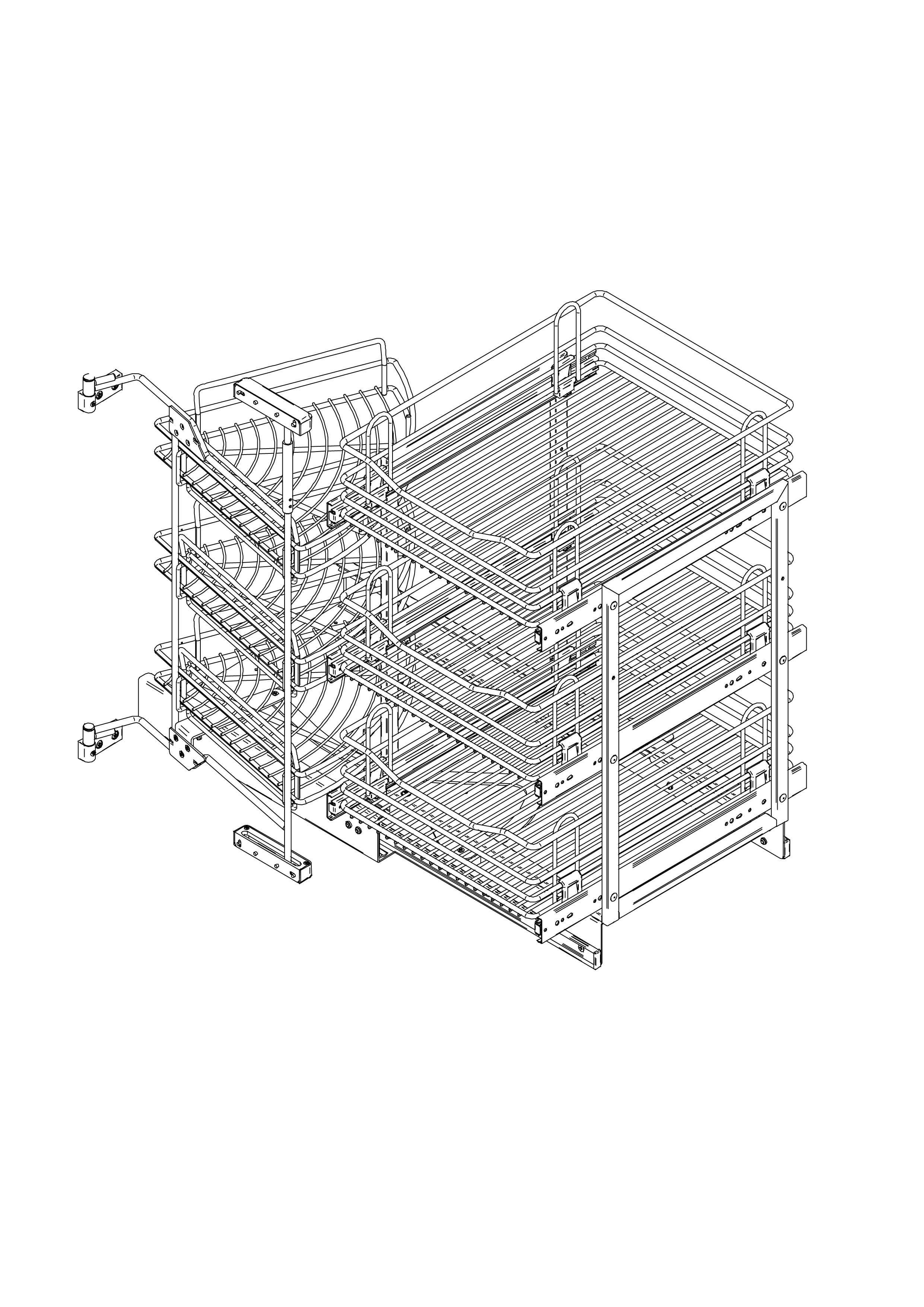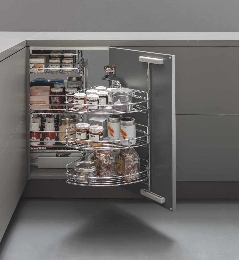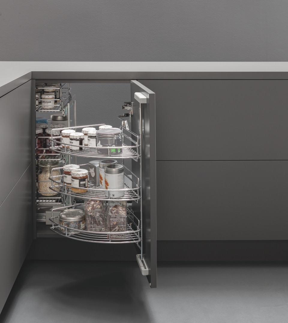 L'Easy Corner rende facilmente accessibile qualsiasi mobile ad angolo. La versione 3+3 è composta da tre cesti principali che escono solidali con l'anta e tre cesti interni estraibili.