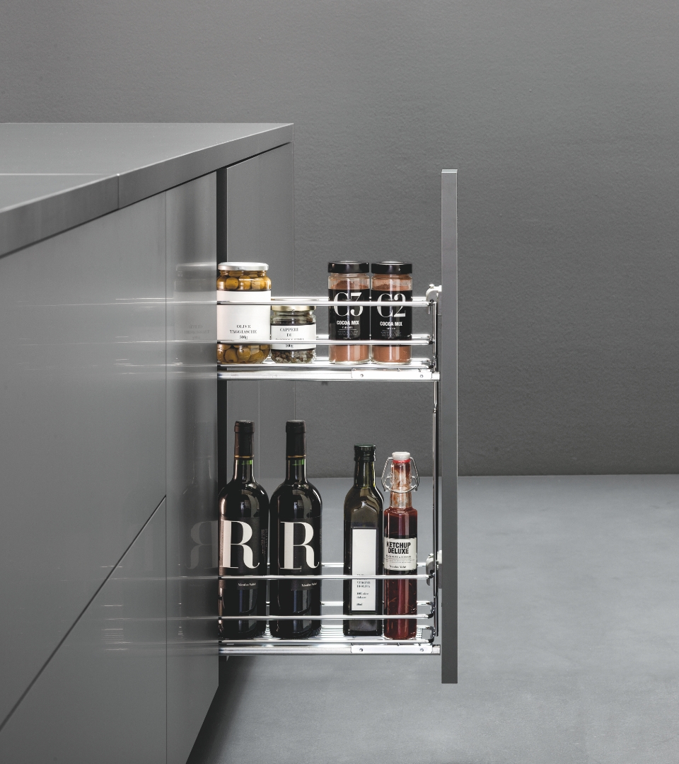 L'estraibile laterale base è la soluzione ideale per ottimizzare anche gli spazi più stretti e angusti della cucina.