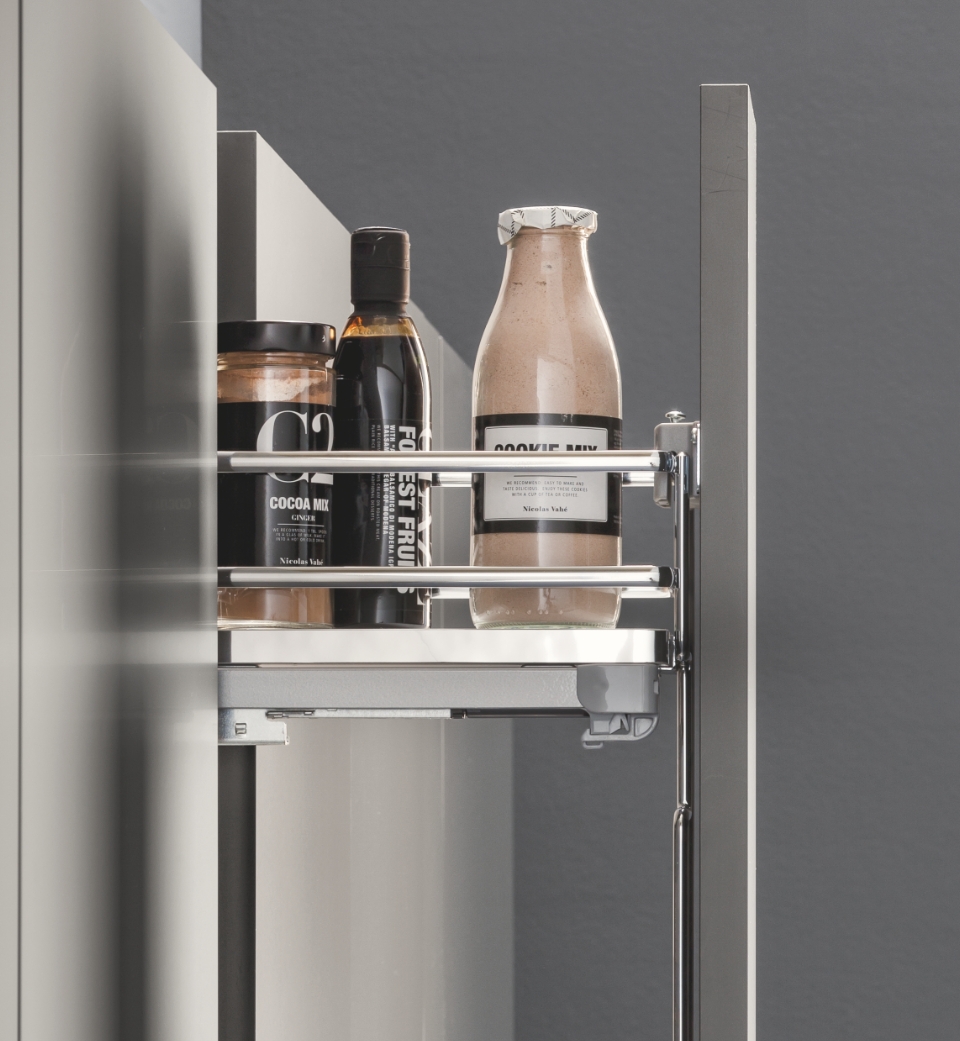 L'estraibile laterale pensile consente di accedere in modo pratico ed efficace a ciò che è conservato nel mobile pensile.