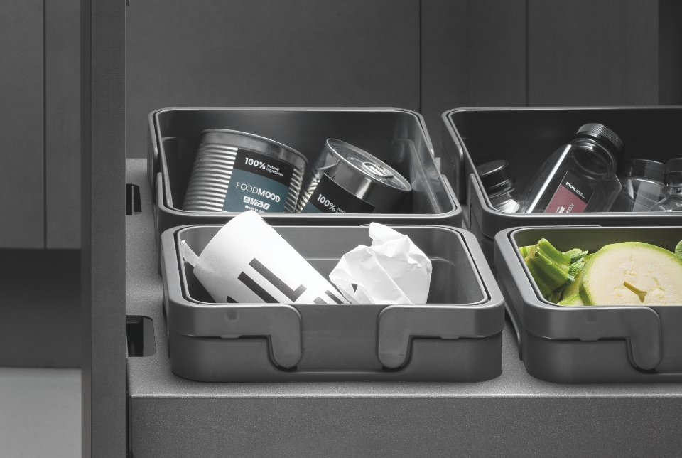 - Per fissaggio delle pattumiere al fondo del mobile