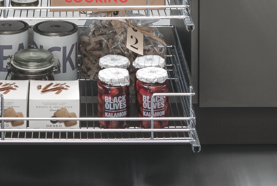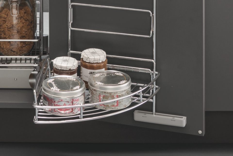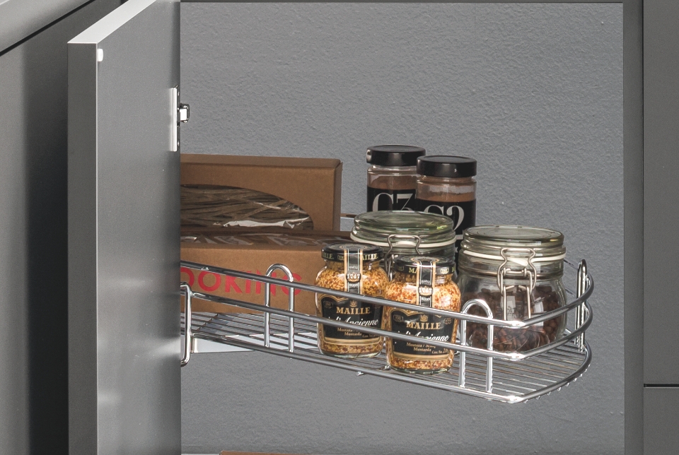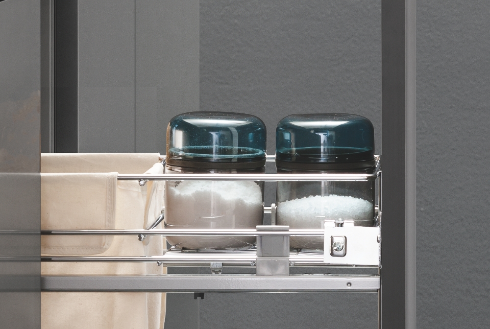I cesti, con ringhierina e fondo in filo tondo, si adattano facilmente a qualsiasi tipologia di cucina e il loro aggancio a scatto consente di installarli e pulirli senza sforzi. In aggiunta, l'universalità della struttura rende possibile accessoriare e personalizzare la colonna con cesti appartenenti a qualsiasi altra gamma Vibo.