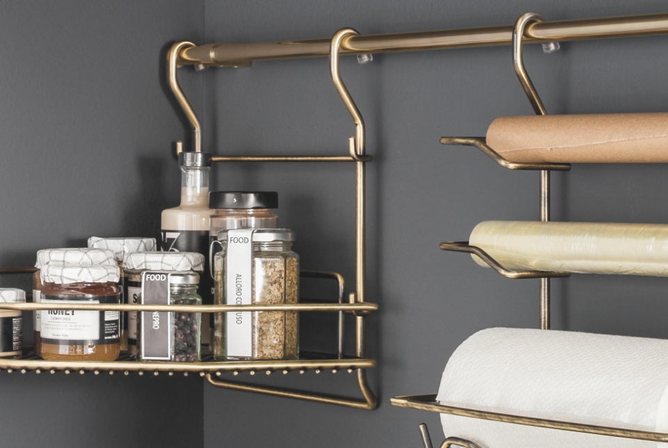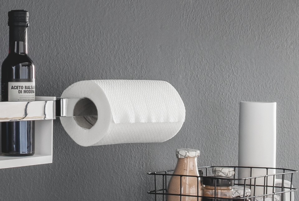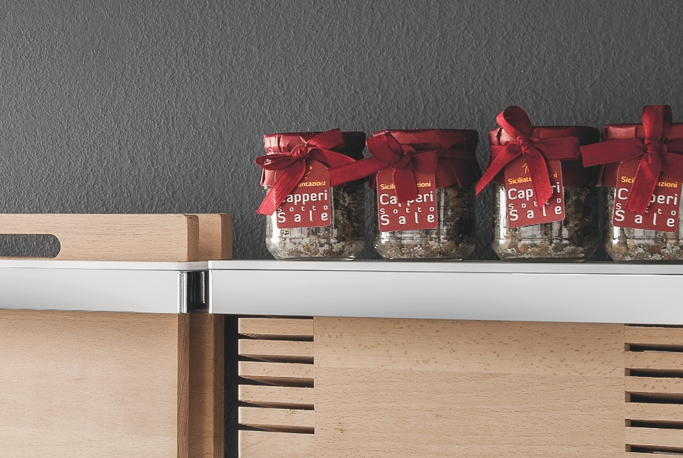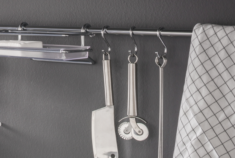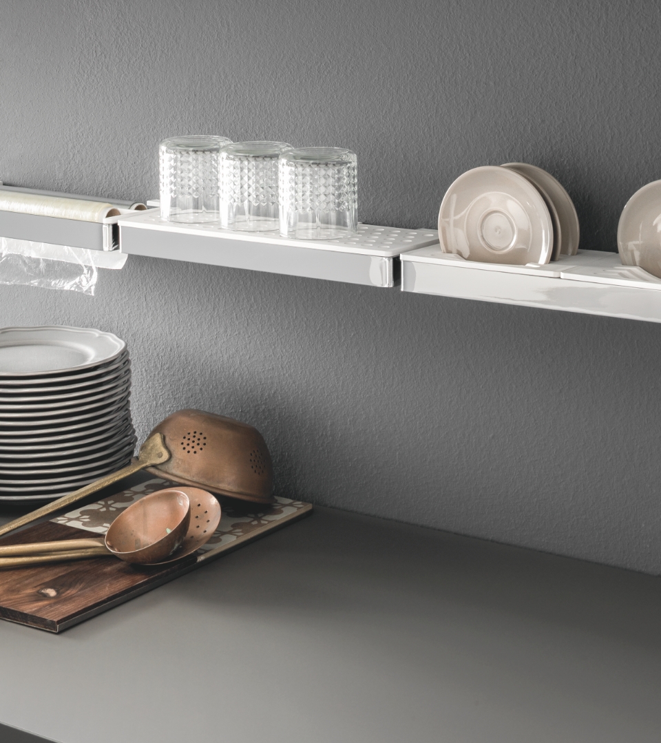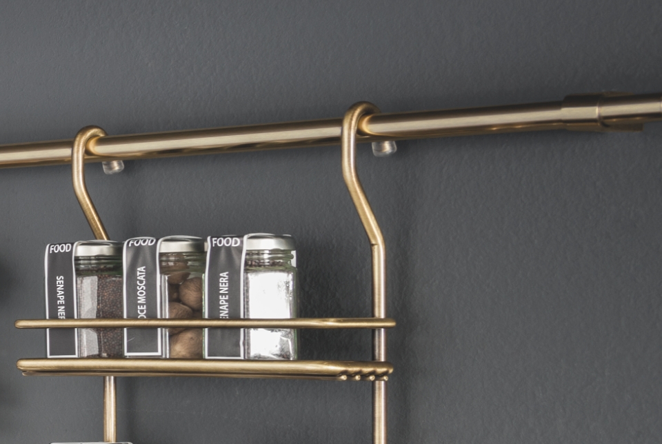 Accessorio mensola per riporre tazze e tazzine con fondo forato per permettere il drenaggio dell'acqua da agganciare alla barra di supporto della linea Mirage.
