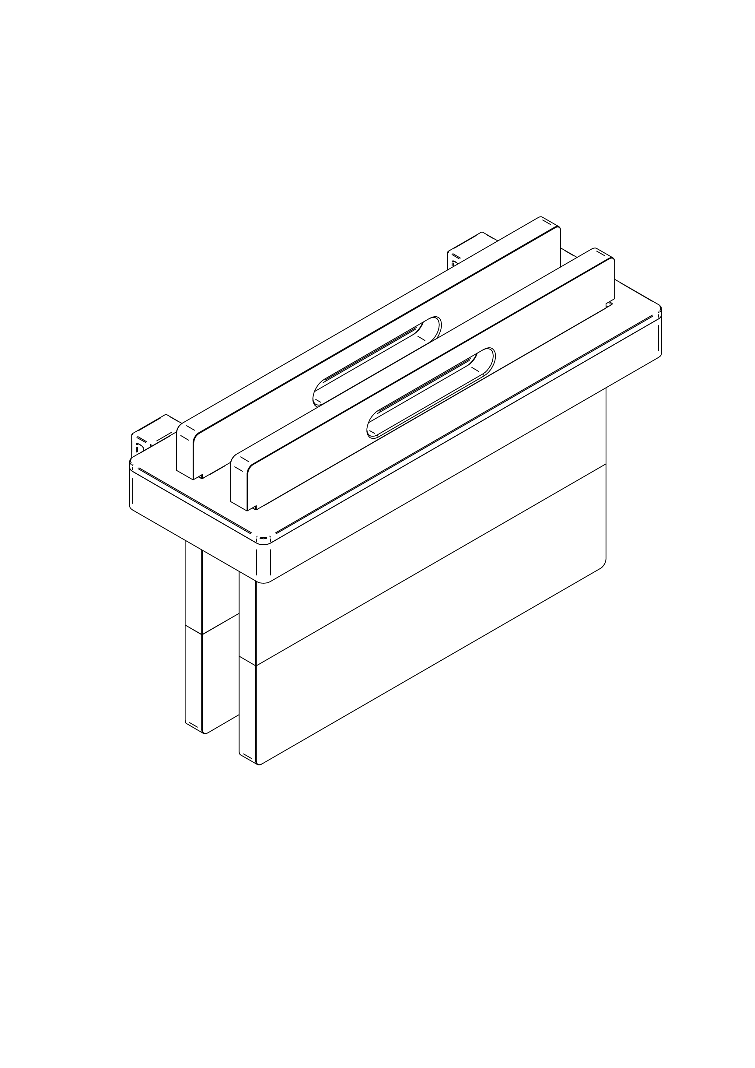 Accessory with divider for storing two beech wood cutting boards, designed to be attached to the Mirage support bar.