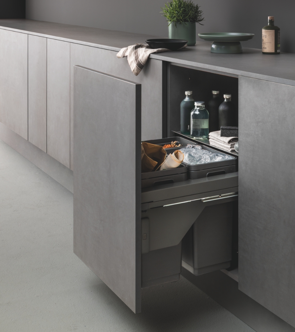 - Polypropylene bins fitted with handles for easy extraction and a fixed sheet metal lid