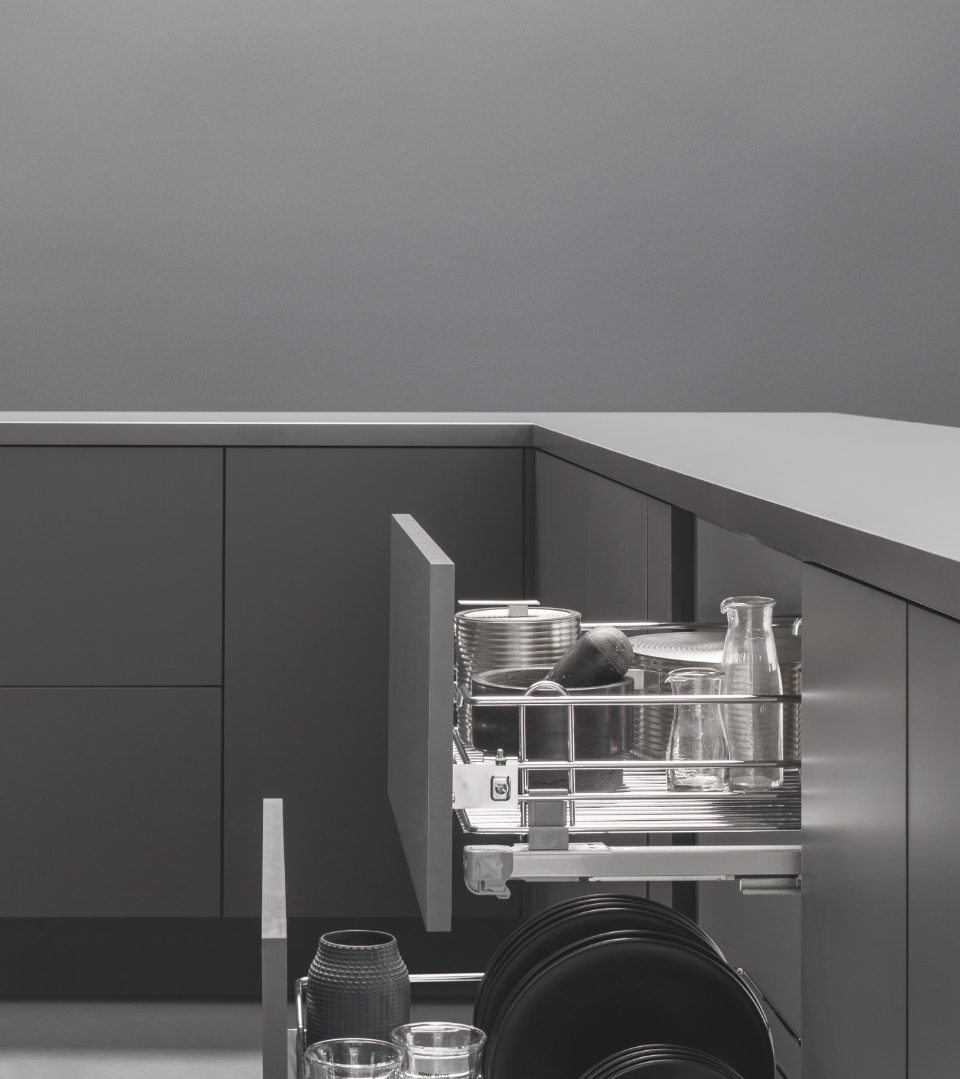 The comfort provided by the soft-closing system and the possibility to pull out the drawer completely ensure a practical and effective usage. Moreover, it is possibile to store products in such a way as to be easily visible and accessible.