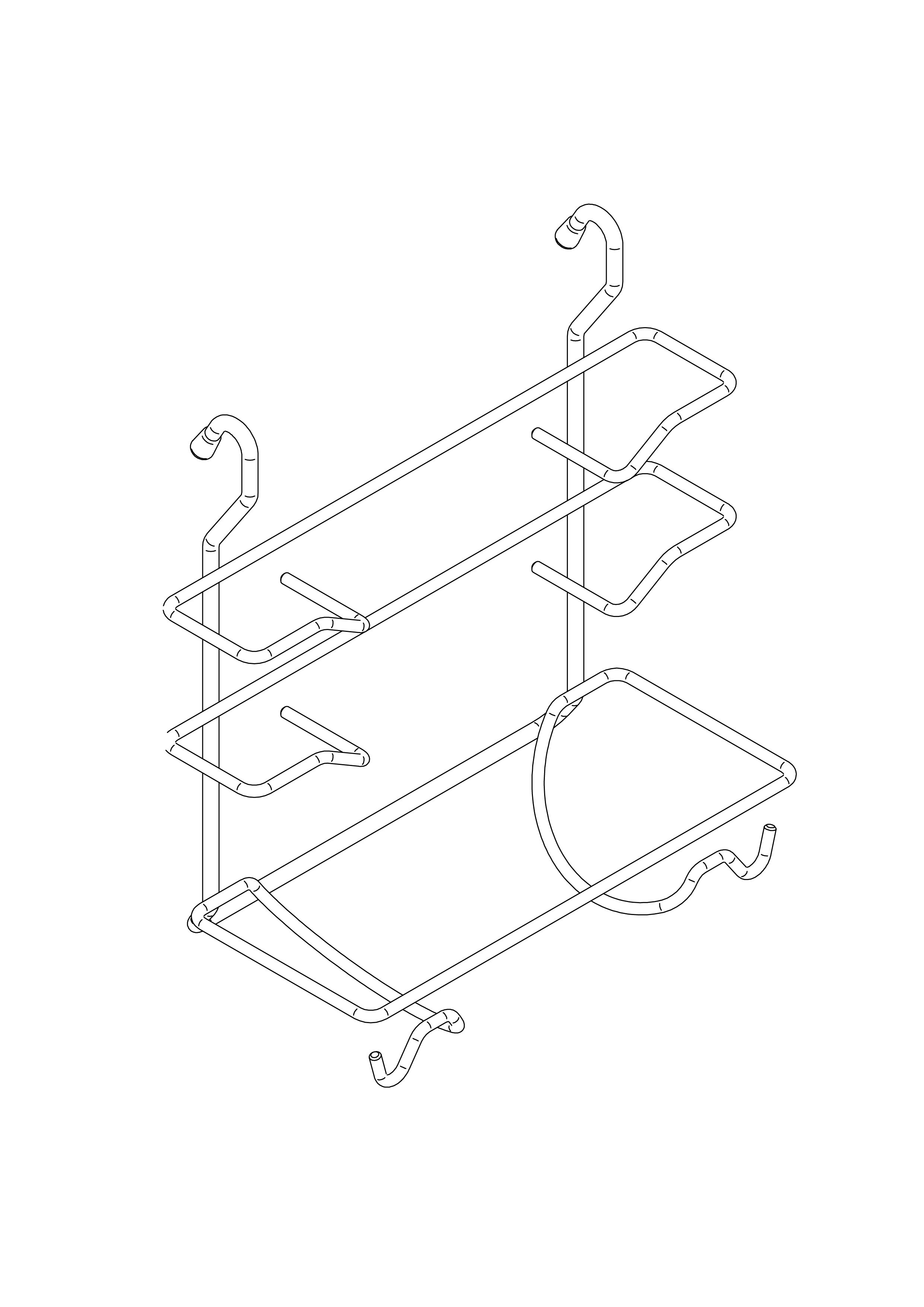 Round wire accessory consisting of three shelves for storing different types of kitchen rolls and designed to be attached to the Wire support bar.