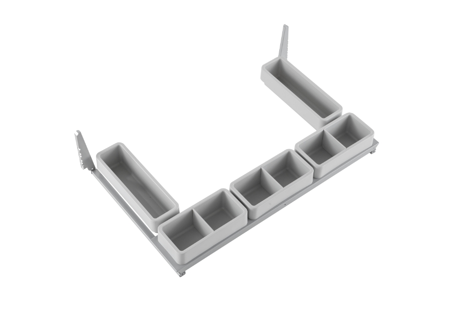 Undersink unit with self-supporting structure made of galvanized sheet metal. The side and frontal trays with dividerscould be placed according to the needs. Therefore, it ensures versatility and a good optimization of space.