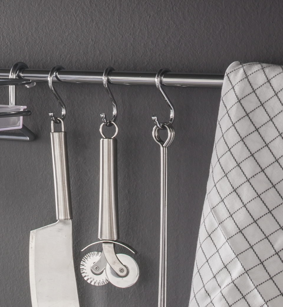 Round wire supporting bar designed to be fixed to the wall in order to attach the wide variety of Wire accessories.