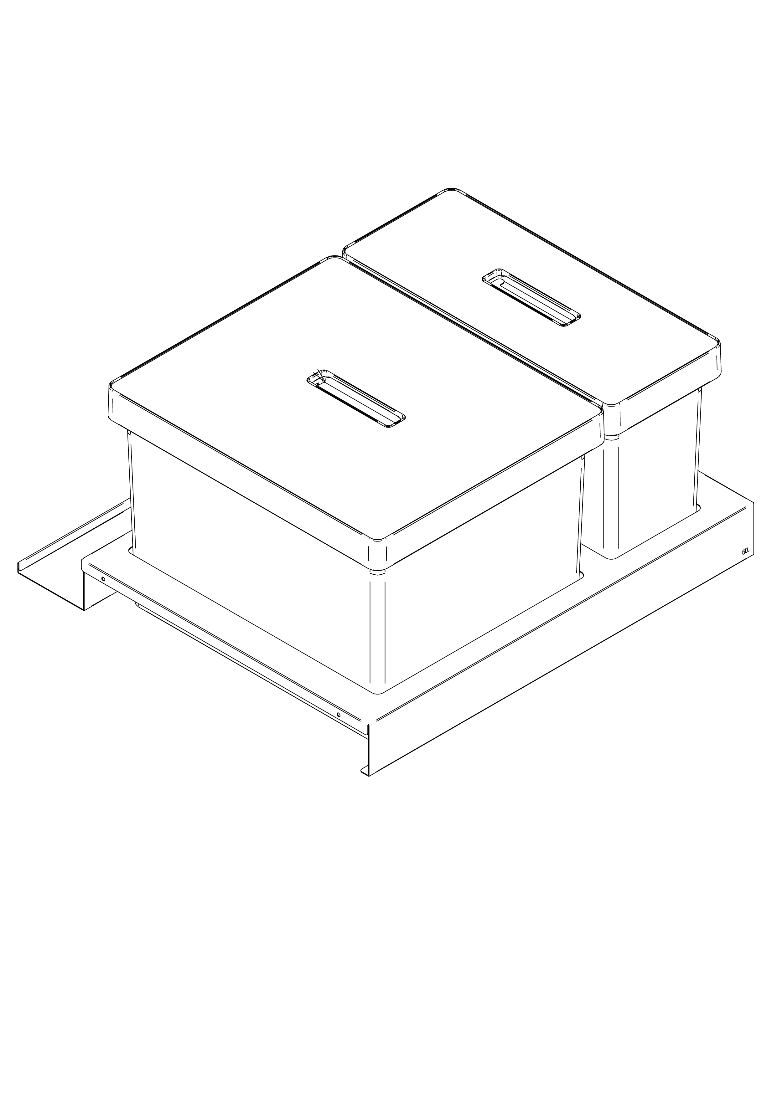 The base is made of pre-galvanized, epoxy-coated sheet metal and is available in epoxy-coated Grigio Antracite and Flat Black finishes. It is designed to be placed directly on the drawer bottom and comes with manually removable plastic or steel lids.