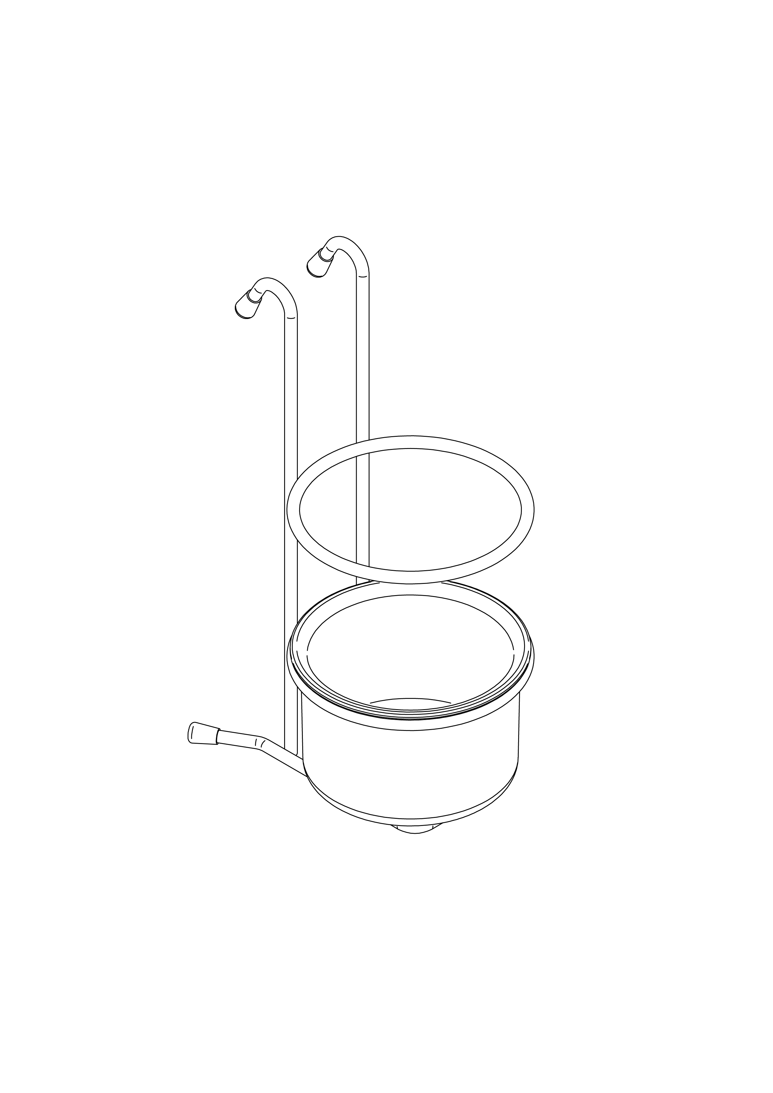 Accessorio in filo tondo con un contenitore in plastica trasparente che può essere rimosso adatto per riporre le posate da agganciare sulla barra di supporto della linea Wire.