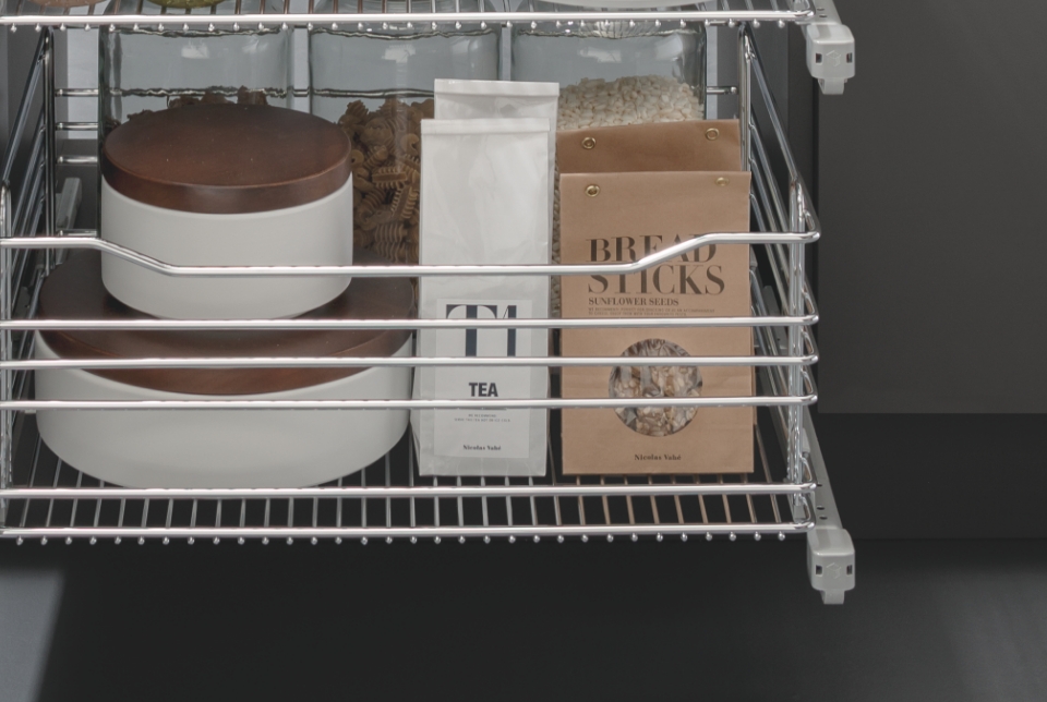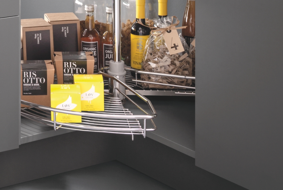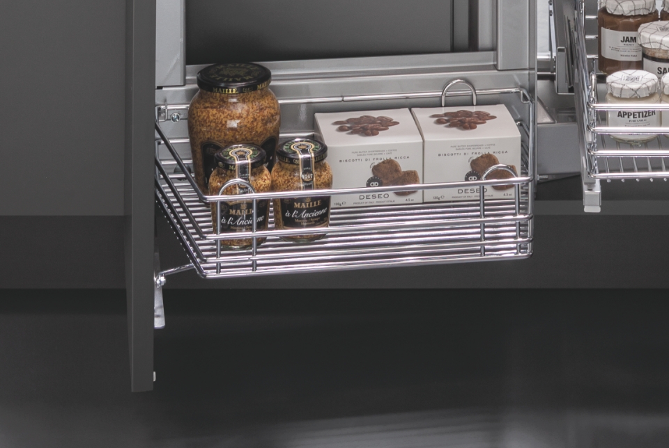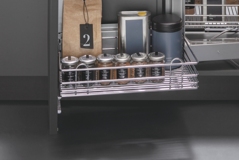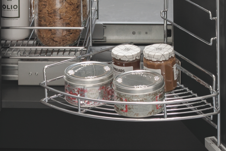L'Easy Corner rende facilmente accessibile qualsiasi mobile ad angolo. La versione 3+3 è composta da tre cesti principali che escono solidali con l'anta e tre cesti interni estraibili.