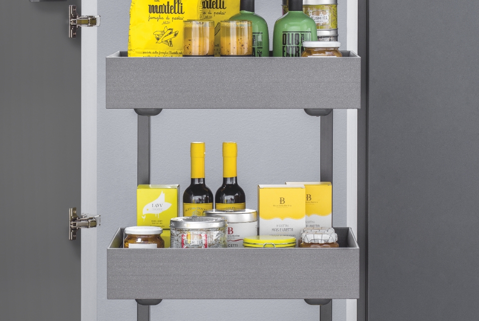 A differenza del tradizionale estraibile doppio, l'estraibile doppio fisso si distingue per i ripiani interni fissi in lamiera.