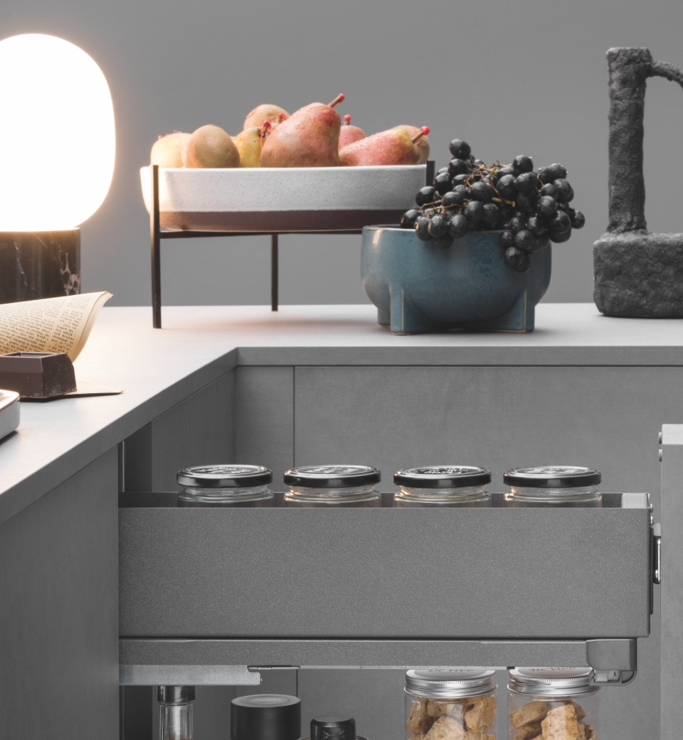 L'estraibile laterale base è la soluzione ideale per ottimizzare anche gli spazi più stretti e angusti della cucina.