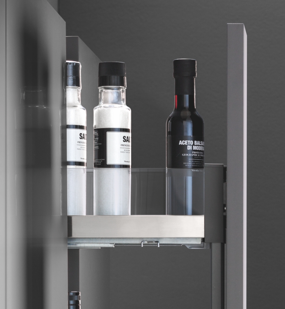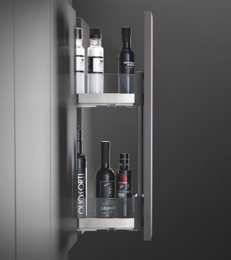 L'estraibile laterale pensile consente di accedere in modo pratico ed efficace a ciò che è conservato nel mobile pensile.