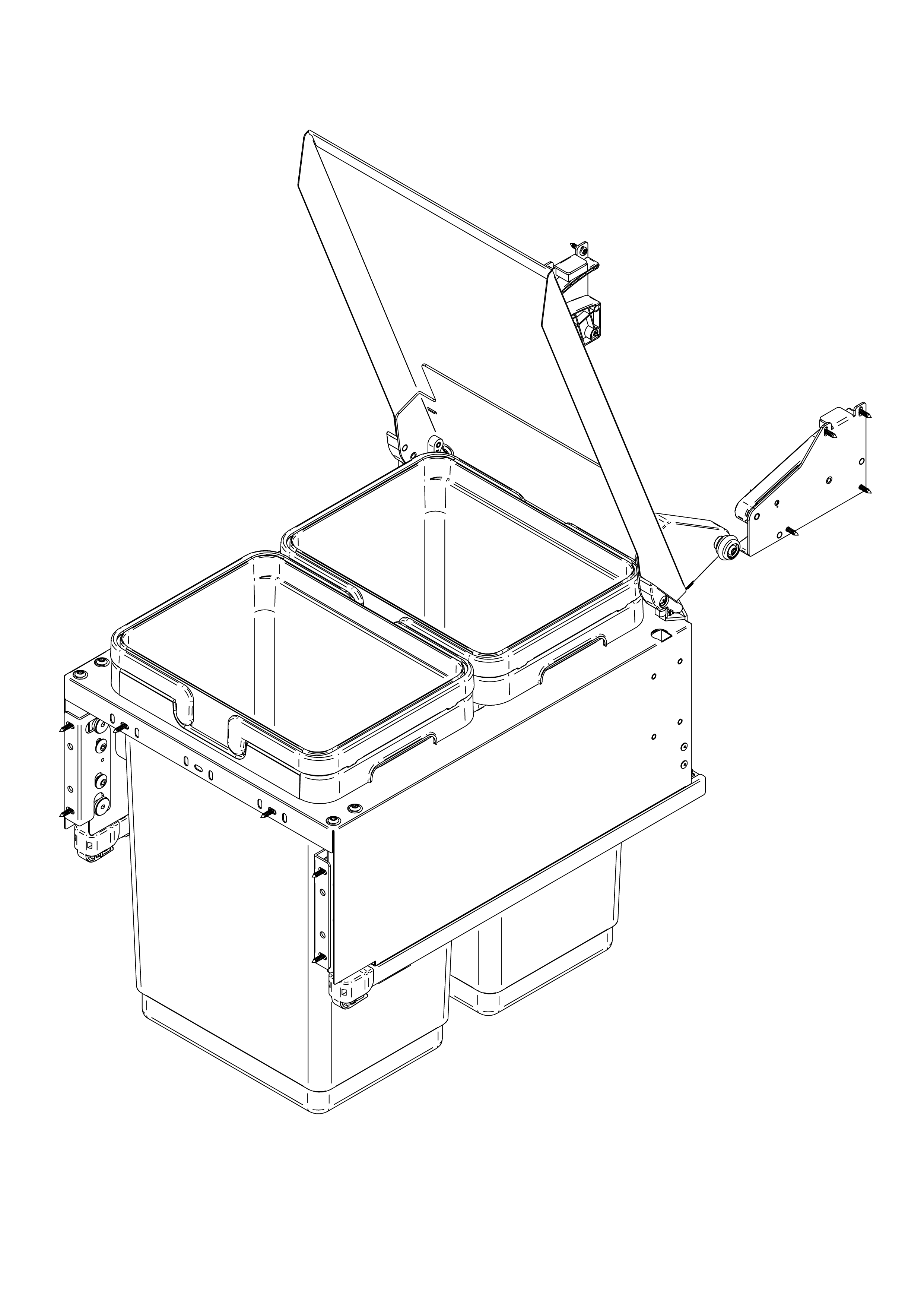 - Contenitori in polipropilene dotati di manici per una facile estrazione e coperchio automatico in lamiera