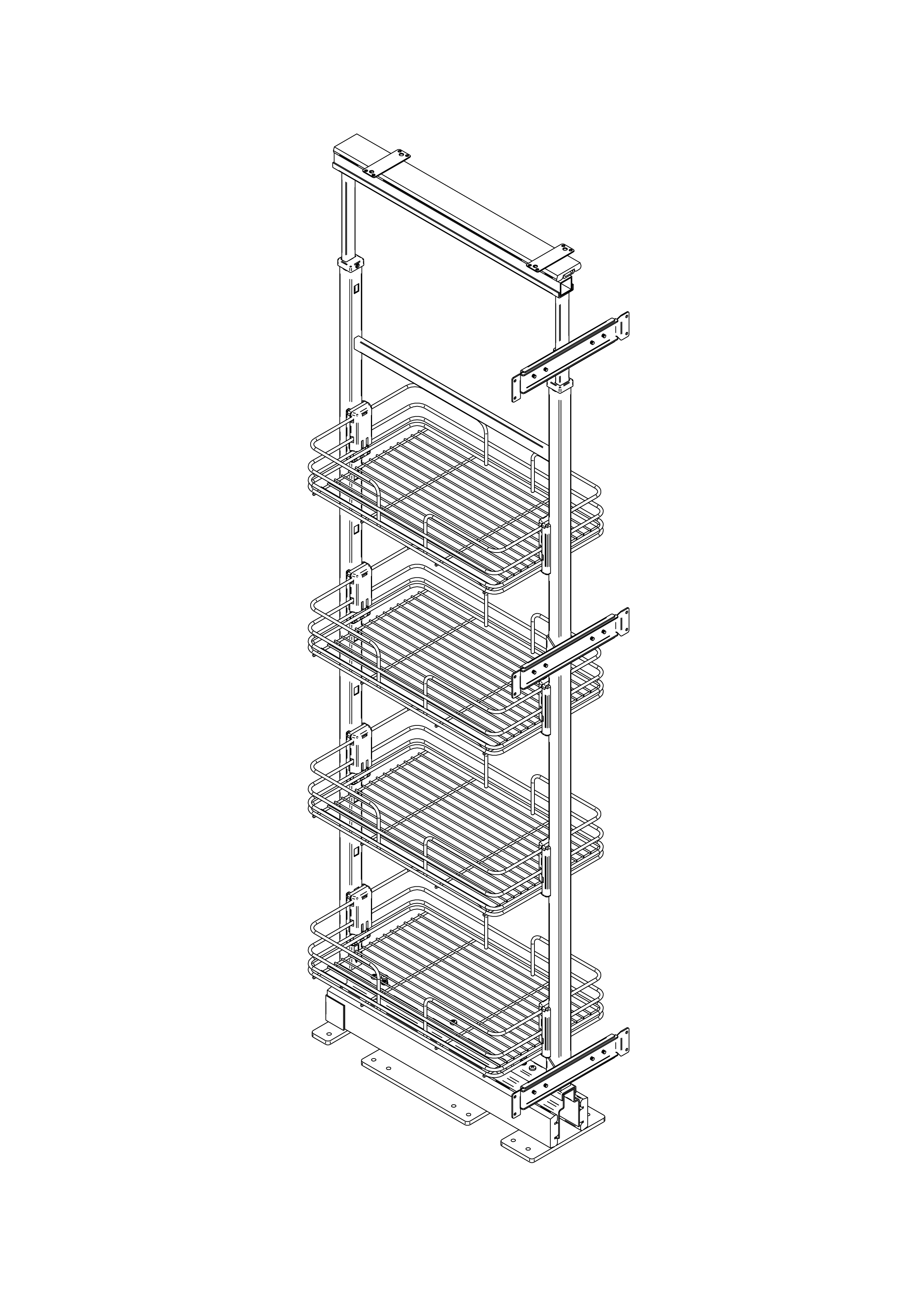 I cesti, con ringhierina e fondo in filo tondo, si adattano facilmente a qualsiasi tipologia di cucina e il loro aggancio a scatto consente di installarli e pulirli senza sforzi. In aggiunta, l'universalità della struttura rende possibile accessoriare e personalizzare la colonna con cesti appartenenti a qualsiasi altra gamma Vibo.