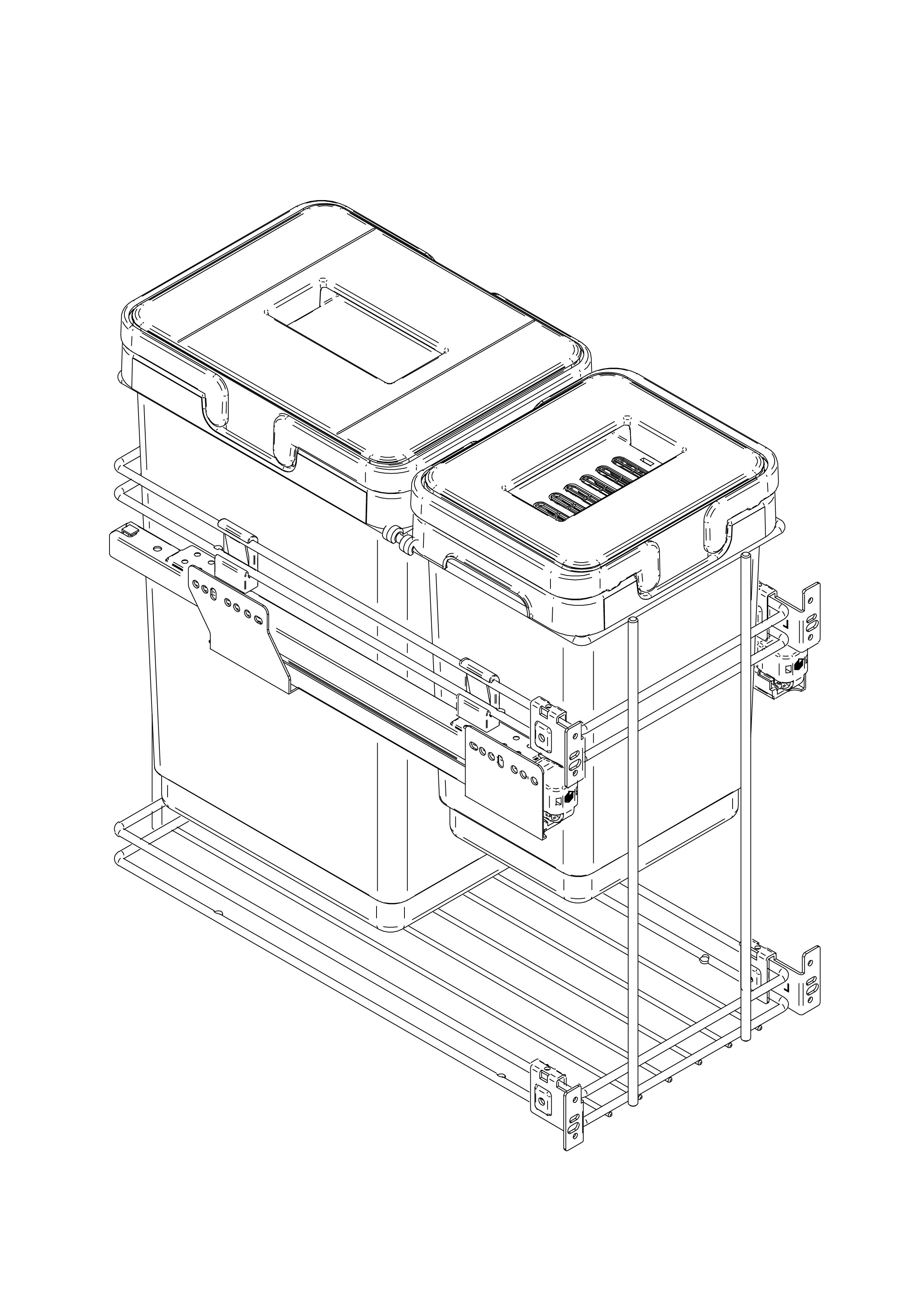 Struttura in filo cromato e disponibile in due versioni. Kombi Easy è un sistema per la raccolta differenziata completa di contenitori in polipropilene dotati di manici per una facile estrazione e coperchi manuali.