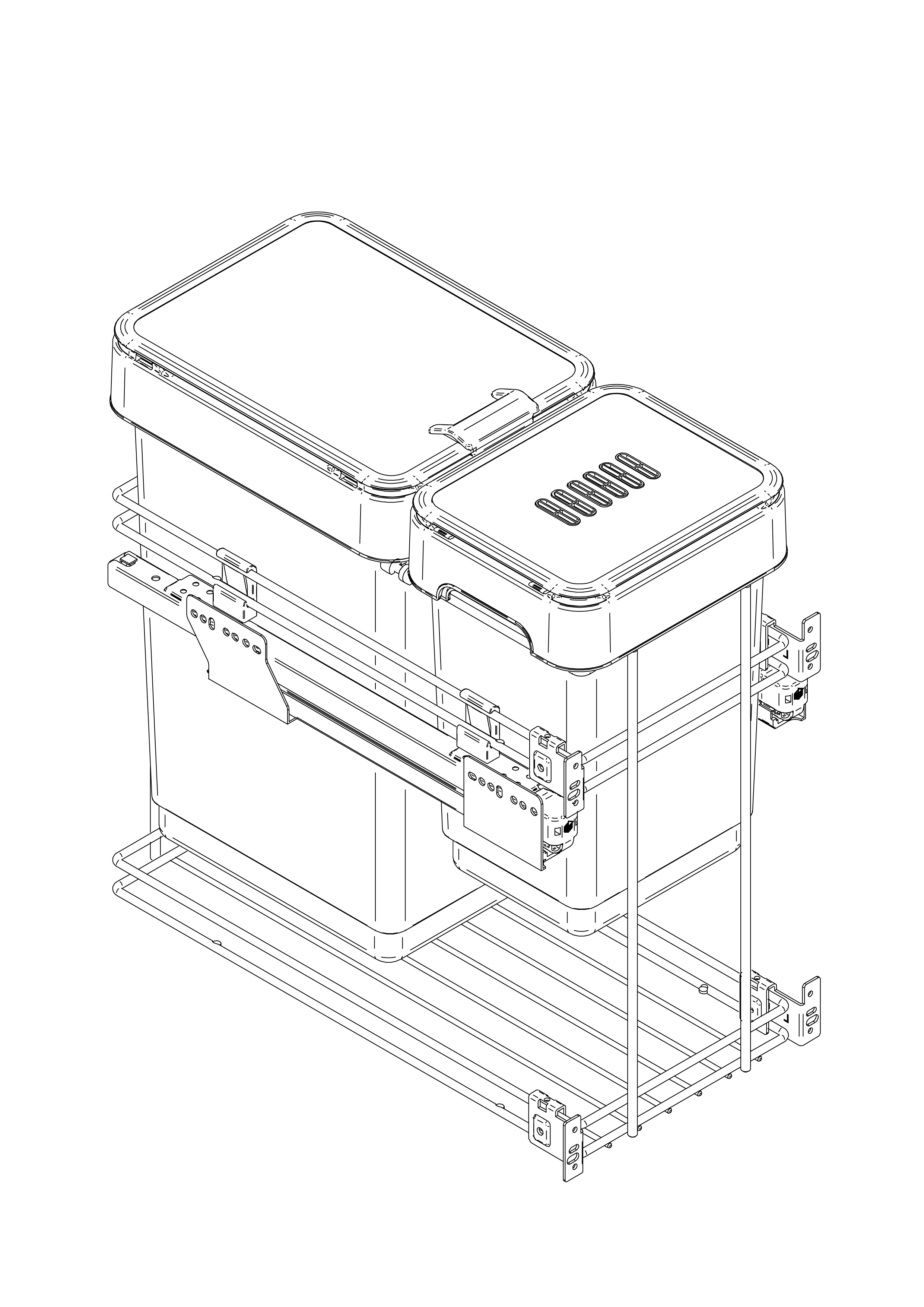 In particolare, il coperchio dedicato alla sezione dell'umido comprende un filtro a carboni attivi e antiodore. La sua versatilità è rappresentata dall'extra estrazione e dalla varietà delle combinazioni offerte che garantiscono la massima personalizzazione e l'ottimizzazione dello spazio all'interno del mobile.