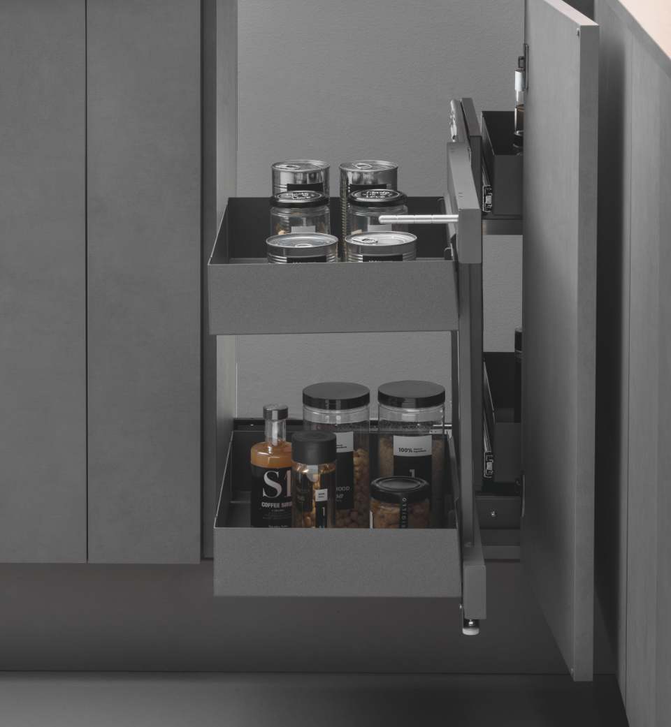 Accesso facile ad ogni angolo. Kubico risponde alla necessità di migliorare il contenimento sfruttando in modo efficiente lo spazio all’interno del mobile. Caratterizzato da una grande robustezza e durabilità nel tempo.