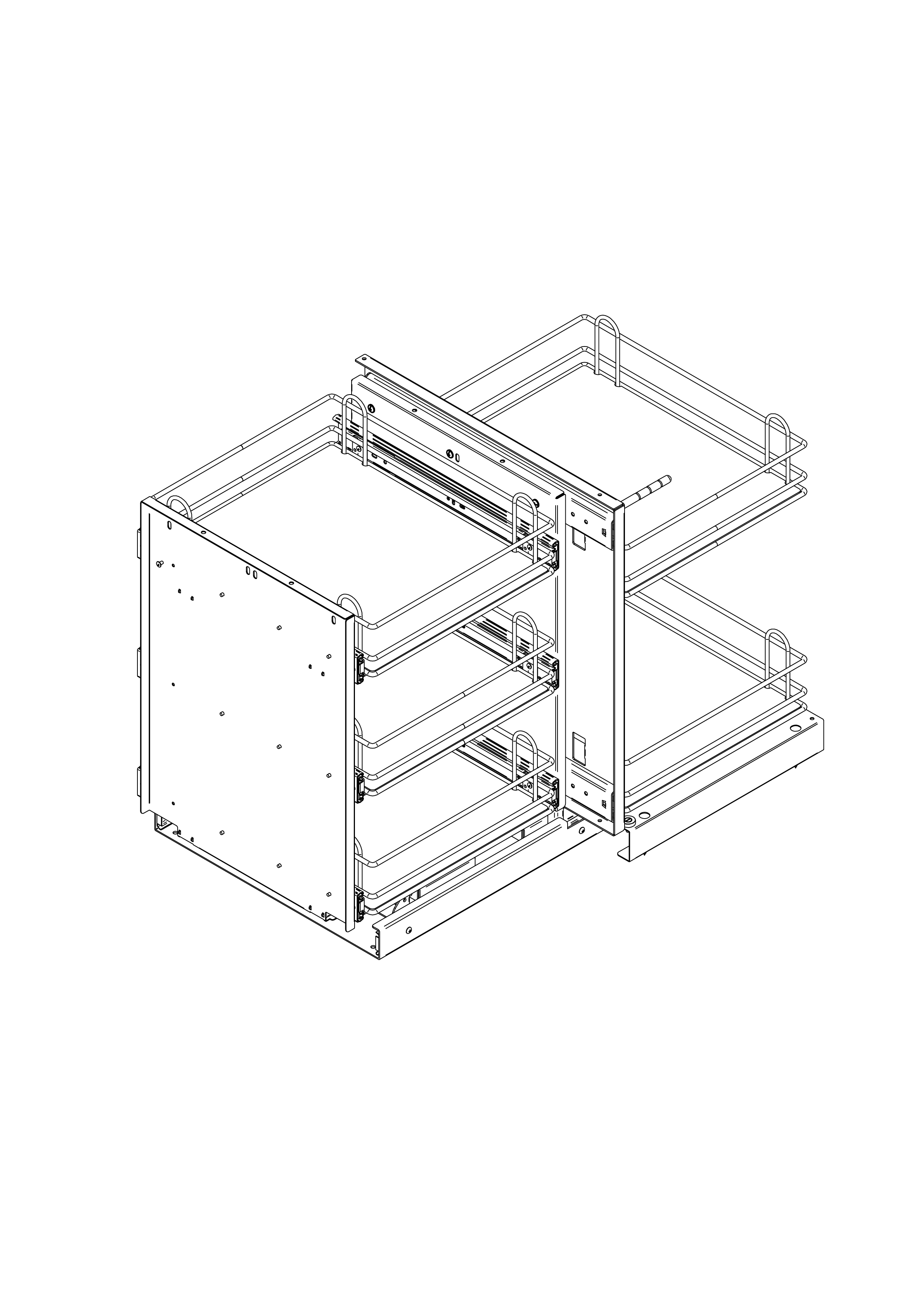 - Tre cesti interni si muovono in modo scorrevole con la struttura