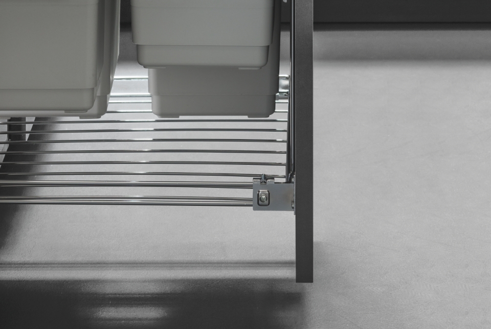 La Mini Bridge è un sistema per la raccolta differenziata composto da due contenitori in polipropilene dotati di manici per una facile estrazione abbinati ad un ripiano fisso in metallo: ottima anche per gli spazi più ridotti.