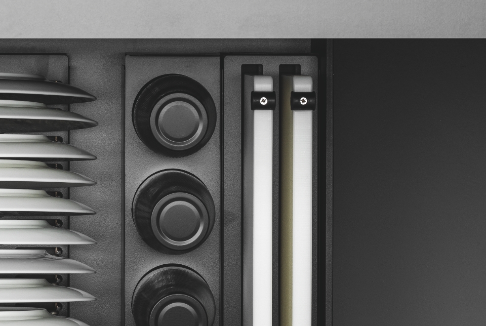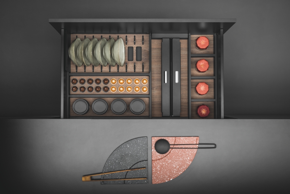 Calici esposti in alto, pronti a infondere eleganza nell’ambiente. Sotto, un ripiano solido e pratico — mini per chi apprezza l’essenziale, maxi per chi vuole ogni cosa al posto giusto.